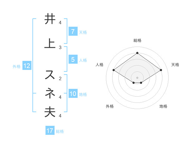 井上 スネ夫さんを姓名の画数から五運を鑑定