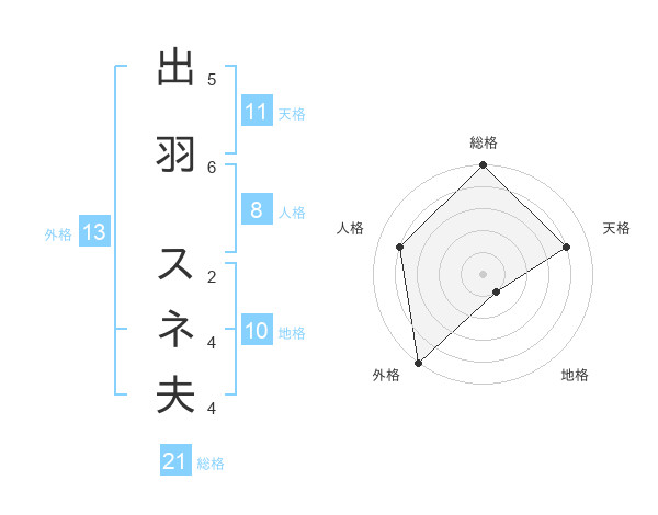 出羽 スネ夫さんを姓名の画数から五運を鑑定