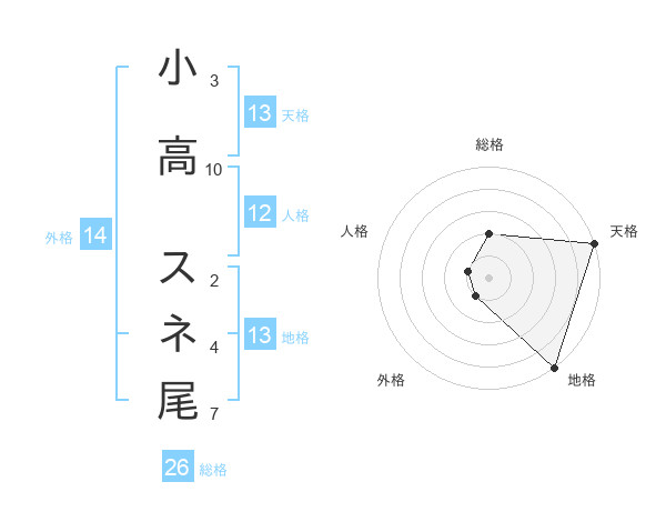 小高 スネ尾さんを姓名の画数から五運を鑑定