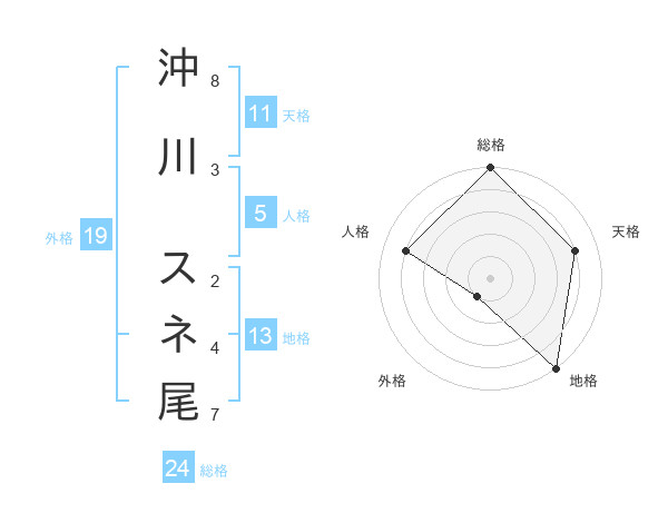 沖川 スネ尾さんの総格は24画の5点!