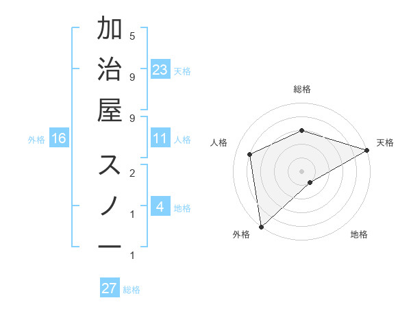 加治屋 スノーさんを姓名の画数から五運を鑑定