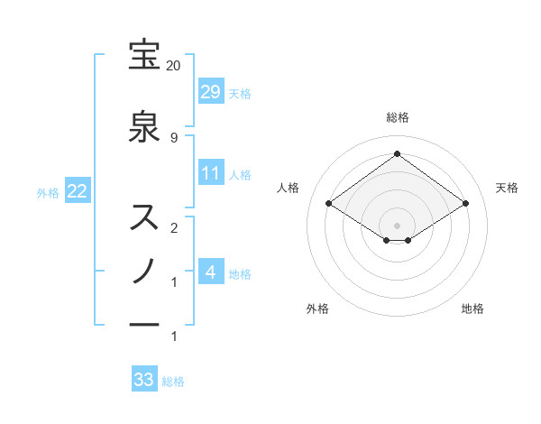 宝泉 スノーさんの総格は33画の4点!