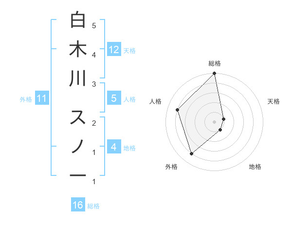 白木川 スノーさんを姓名の画数から五運を鑑定