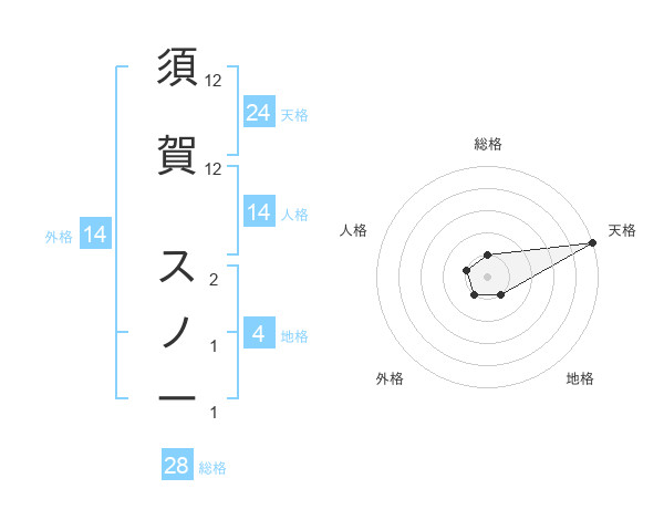 須賀 スノーさんを姓名の画数から五運を鑑定