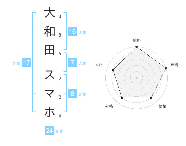 大和田 スマホさんを姓名の画数から五運を鑑定