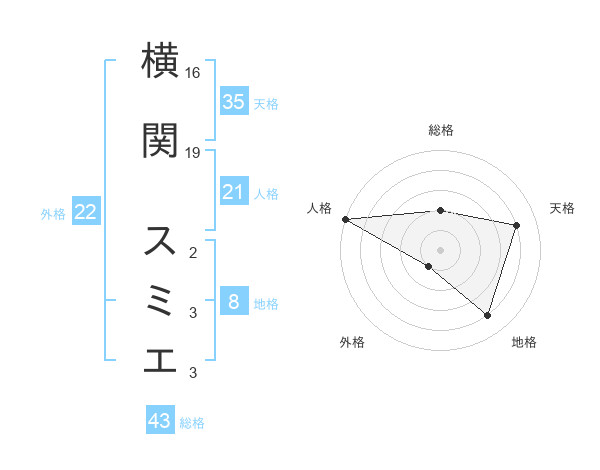 横関 スミエさんの総格は43画の2点!