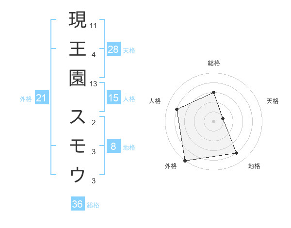 現王園 スモウさんの人格は15画の4点!