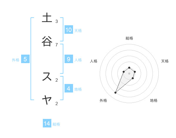 土谷 スヤさんを姓名の画数から五運を鑑定