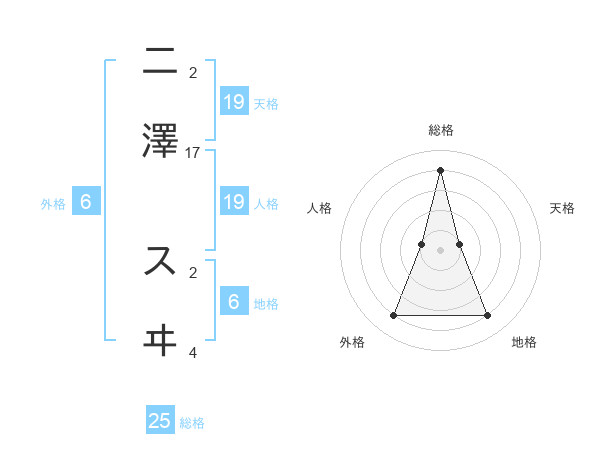 二澤 スヰさんを姓名の画数から五運を鑑定