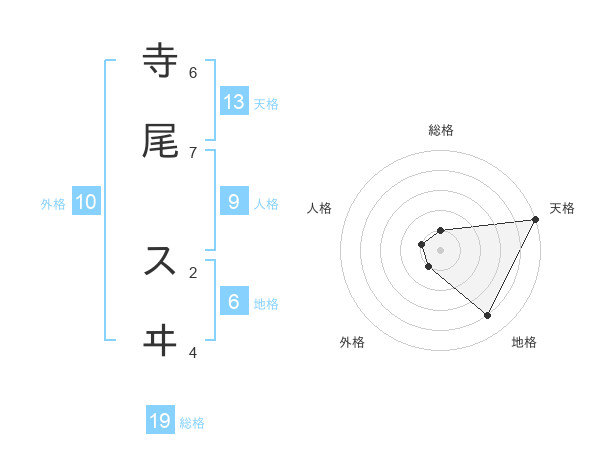 寺尾 スヰさんの天格は13画の5点!