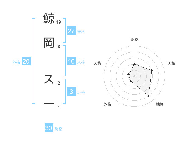 鯨岡 スーさんの総格は30画の2点!