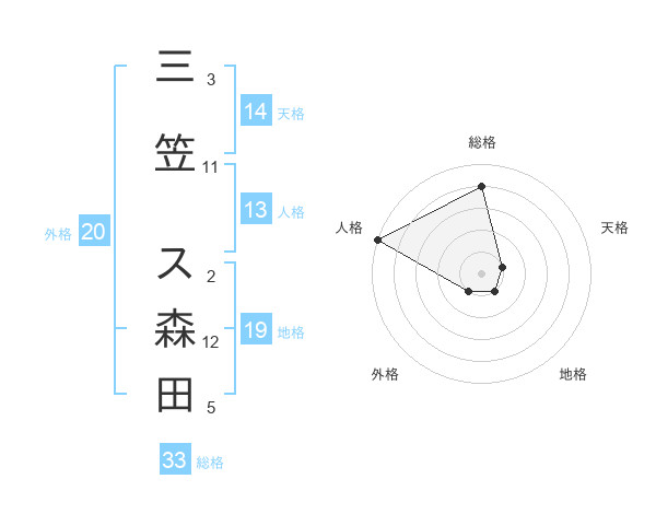 三笠 ス森田さんを姓名の画数から五運を鑑定