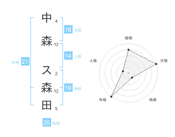中森 ス森田さんを姓名の画数から五運を鑑定