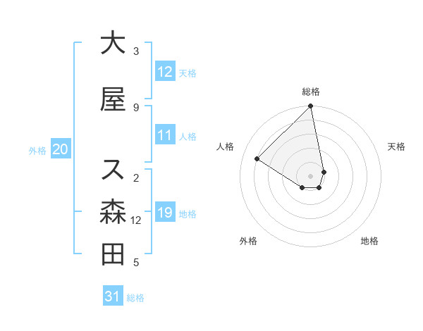 大屋 ス森田さんを姓名の画数から五運を鑑定