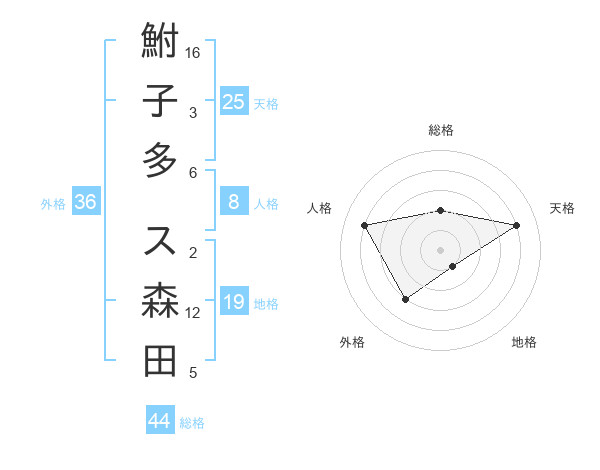 鮒子多 ス森田さんを姓名の画数から五運を鑑定