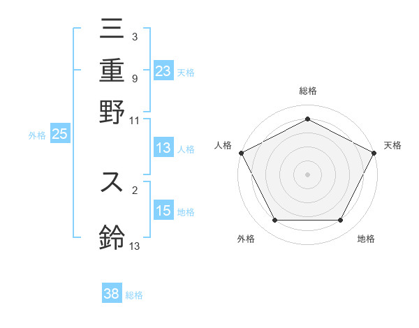 三重野 ス鈴さんの総格は38画の4点!