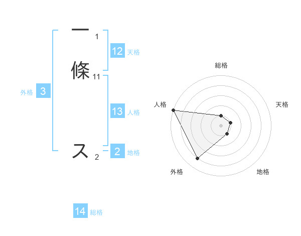 一條 スさんの総格は14画の1点!