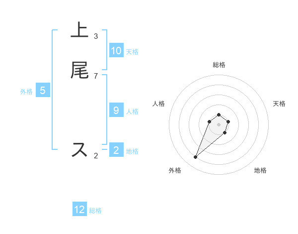 上尾 スさんの総格は12画の1点!