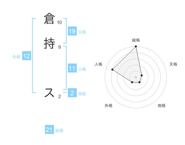 倉持 スさんの総格は21画の5点!
