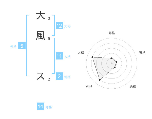 大風 スさんの総格は14画の1点!