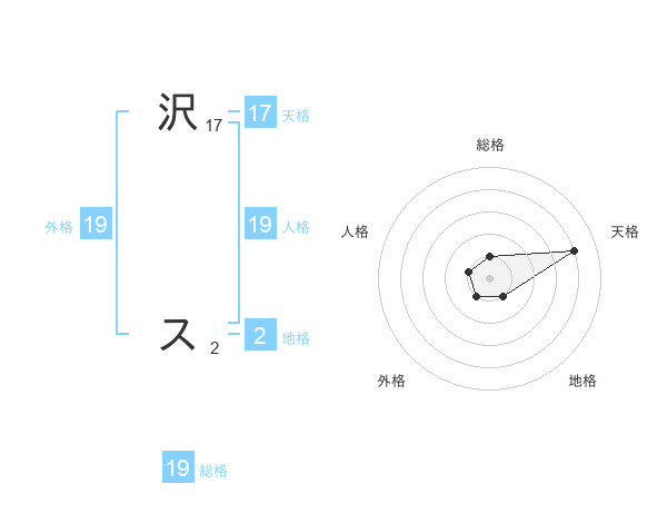 沢 スさんの総格は19画の1点!