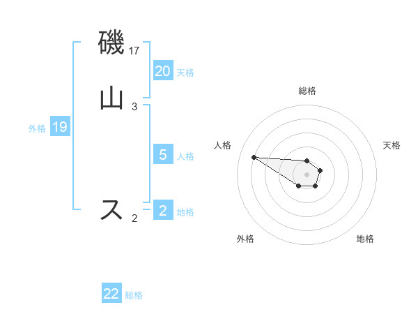 磯山 スさんの総格は22画の1点!