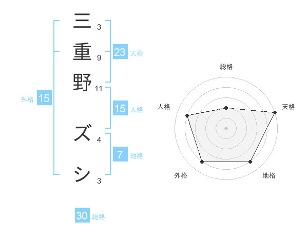 三重野 ズシさんの総格は30画の2点!