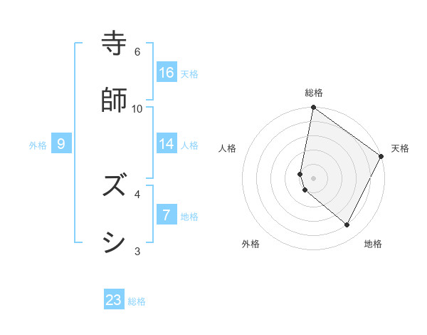 寺師 ズシさんの天格は16画の5点!