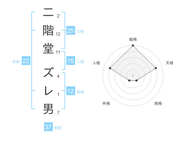 二階堂 ズレ男さんを姓名の画数から五運を鑑定