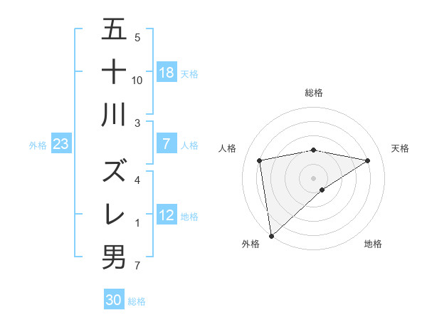 五十川 ズレ男さんの総格は30画の2点!