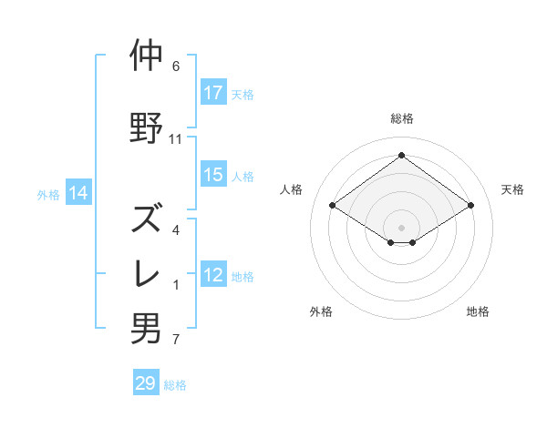 仲野 ズレ男さんを姓名の画数から五運を鑑定