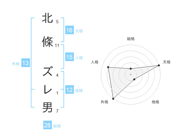 北條 ズレ男さんを姓名の画数から五運を鑑定