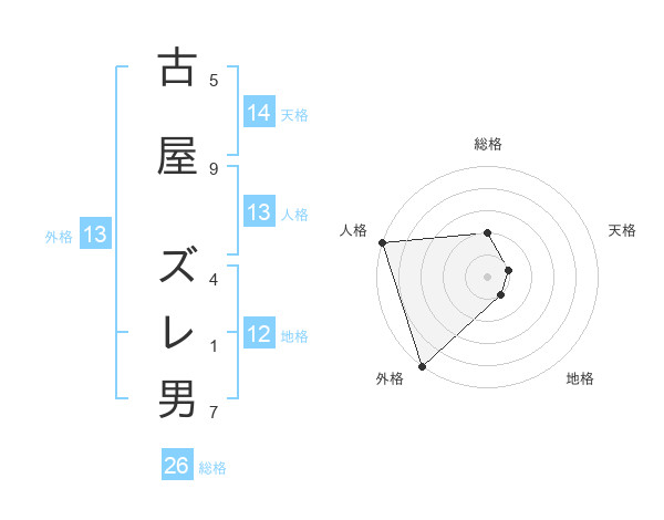 古屋 ズレ男さんを姓名の画数から五運を鑑定