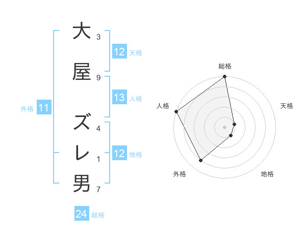 大屋 ズレ男さんを姓名の画数から五運を鑑定