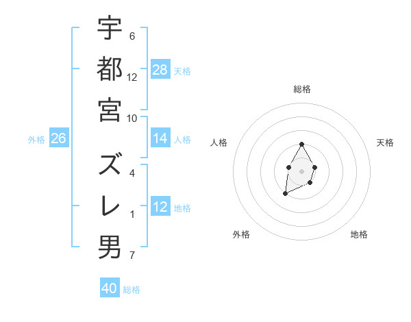 宇都宮 ズレ男さんを姓名の画数から五運を鑑定
