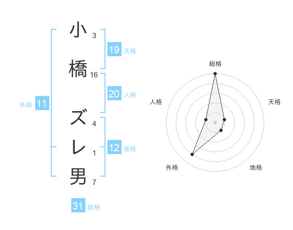 小橋 ズレ男さんを姓名の画数から五運を鑑定