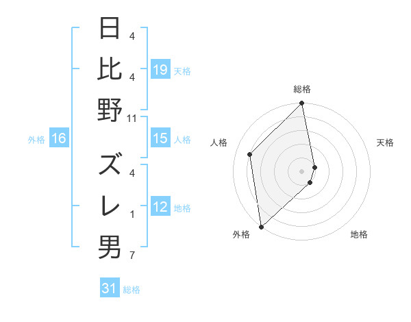 日比野 ズレ男さんの外格は16画の5点!