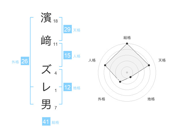 濱﨑 ズレ男さんを姓名の画数から五運を鑑定