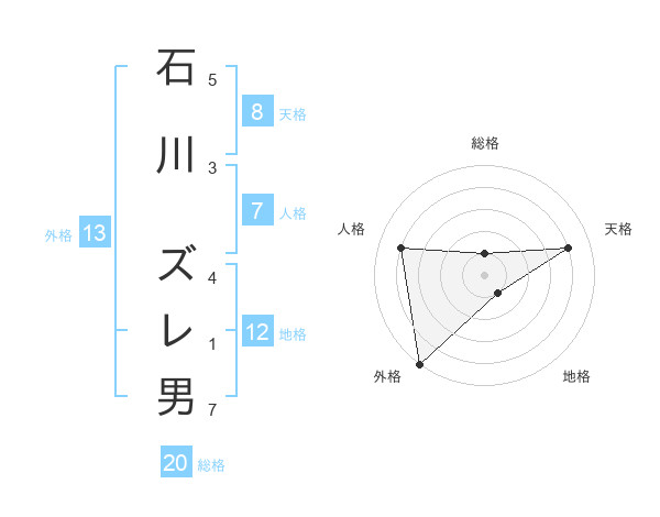 石川 ズレ男さんを姓名の画数から五運を鑑定