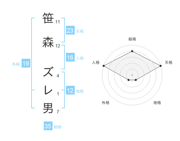 笹森 ズレ男さんの総格は35画の4点!