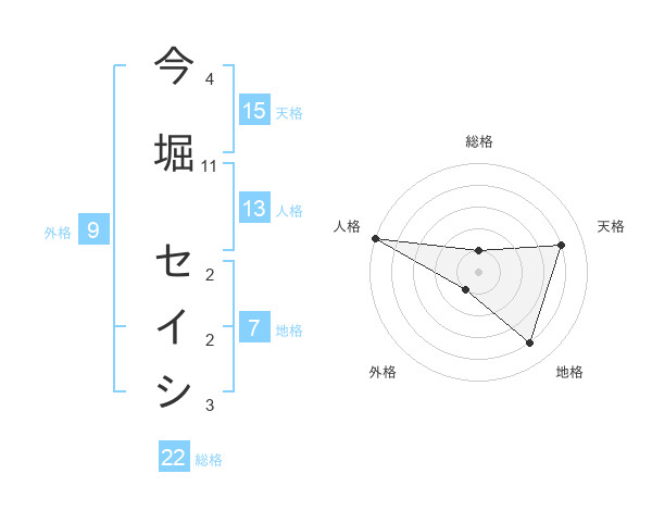 今堀 セイシさんを姓名の画数から五運を鑑定