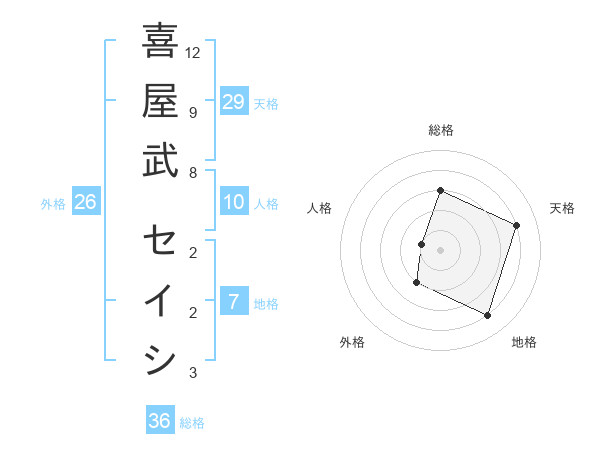 喜屋武 セイシさんを姓名の画数から五運を鑑定