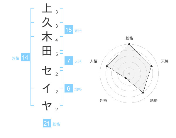 上久木田 セイヤさんを姓名の画数から五運を鑑定