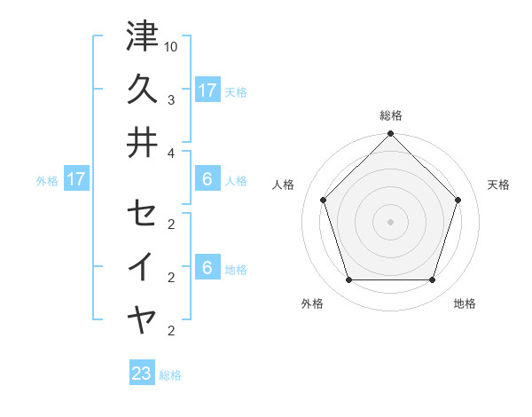 津久井 セイヤさんを姓名の画数から五運を鑑定