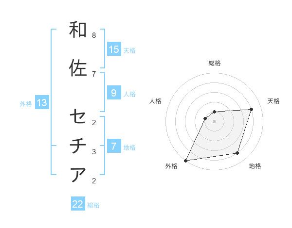 和佐 セチアさんの外格は13画の5点!