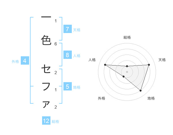 一色 セファさんの総格は12画の1点!