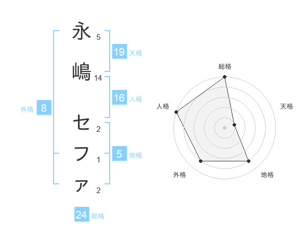 永嶋 セファさんを姓名の画数から五運を鑑定