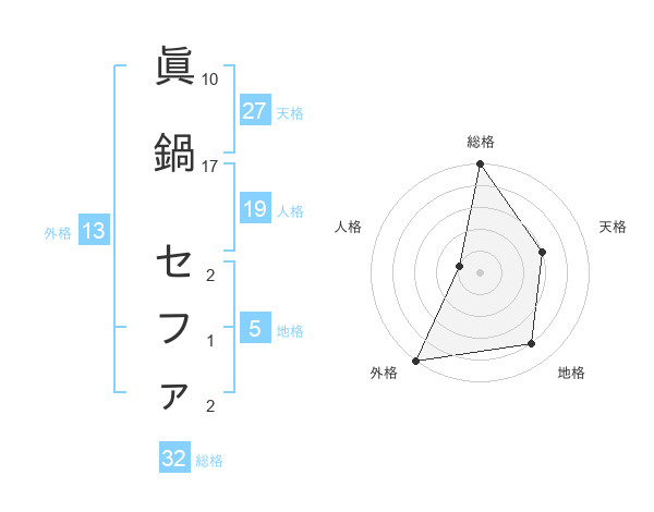 眞鍋 セファさんを姓名の画数から五運を鑑定