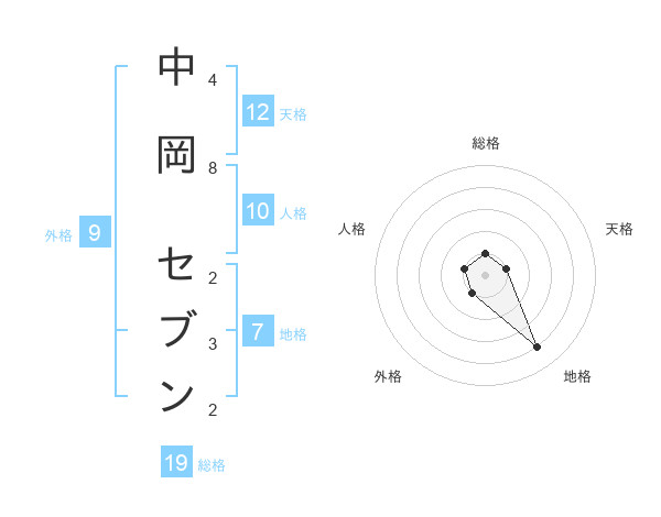 中岡 セブンさんを姓名の画数から五運を鑑定