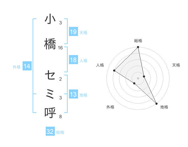 小橋 セミ呼さんを姓名の画数から五運を鑑定